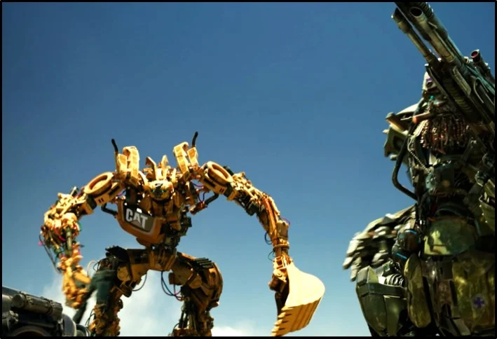 Akční sci-fi Transformers (2017) natočil režisér Michael Bay. Autoboti a Deceptikoni se vracejí v epické bitvě o Zemi. V robota se zde transformuje rýpadlo Cat (stroj podobný Cat 330).